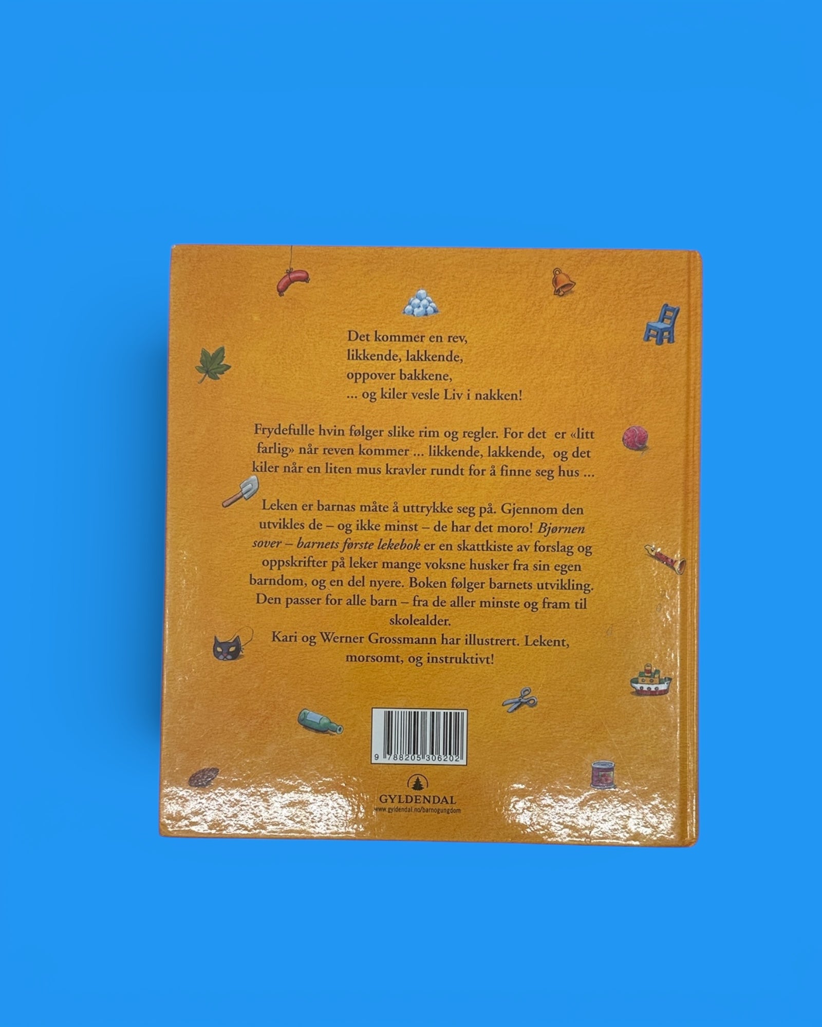 I Bjørnen sover har vi samlet tradisjonsstoff, med lek som utgangspunkt denne gang, og også her får Kari og Werner Grossmann boltre seg fritt. Her er «leker» du kan leke med barnet fra det ligger på stellebordet og til det er i småskole.alderen. Her er typiske inne.leker, ute.leker, leker med element av skapende aktivitet og leker å bryne hjernen på. Mange av lekene er slike som både besteforeldre og foreldre helt sikkert kjenner igjen. En bruksbok for hele småbarnstiden.