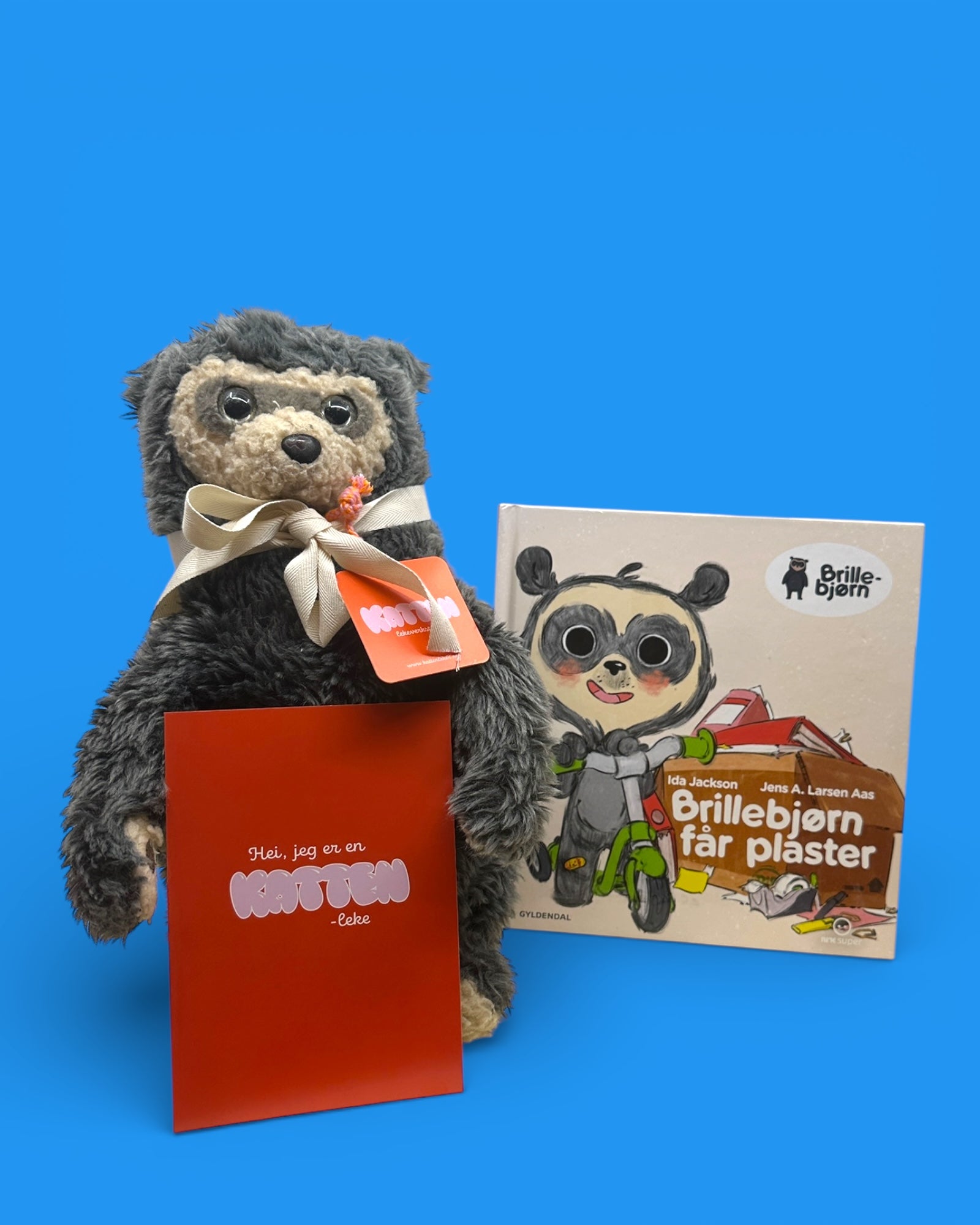 Alle våre kosedyr kommer med et Katten-kort om hvem de er og hva de liker å gjøre. Om du vet hvem som skal få bamsen så legg en beskjed i notatfeltet, da kan vi lage er personlig kort til mottaker. Gi oss også beskjed om du vil vi skal gavepakke bamsen for deg.