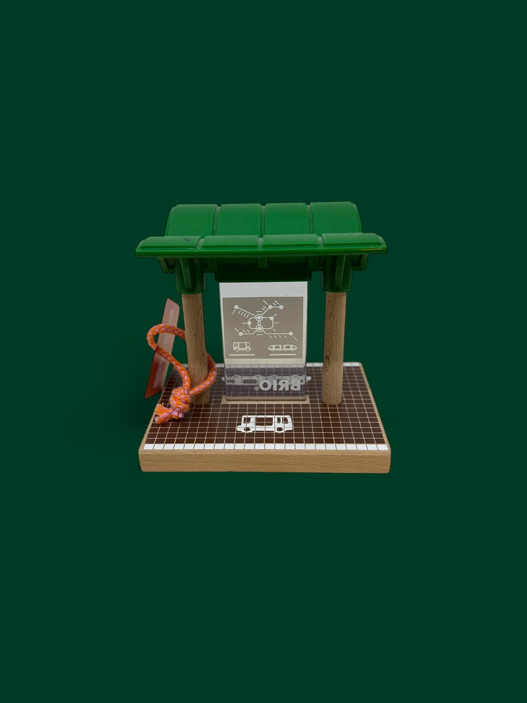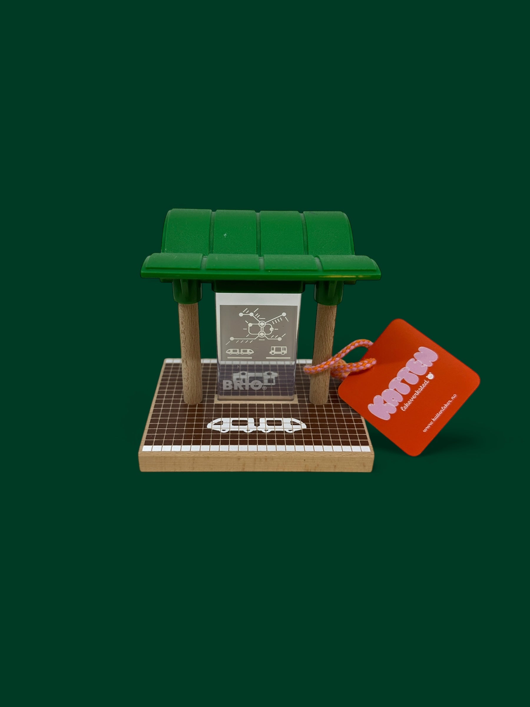 Tillegg til Brio togbane, et ruteskilt under tak.