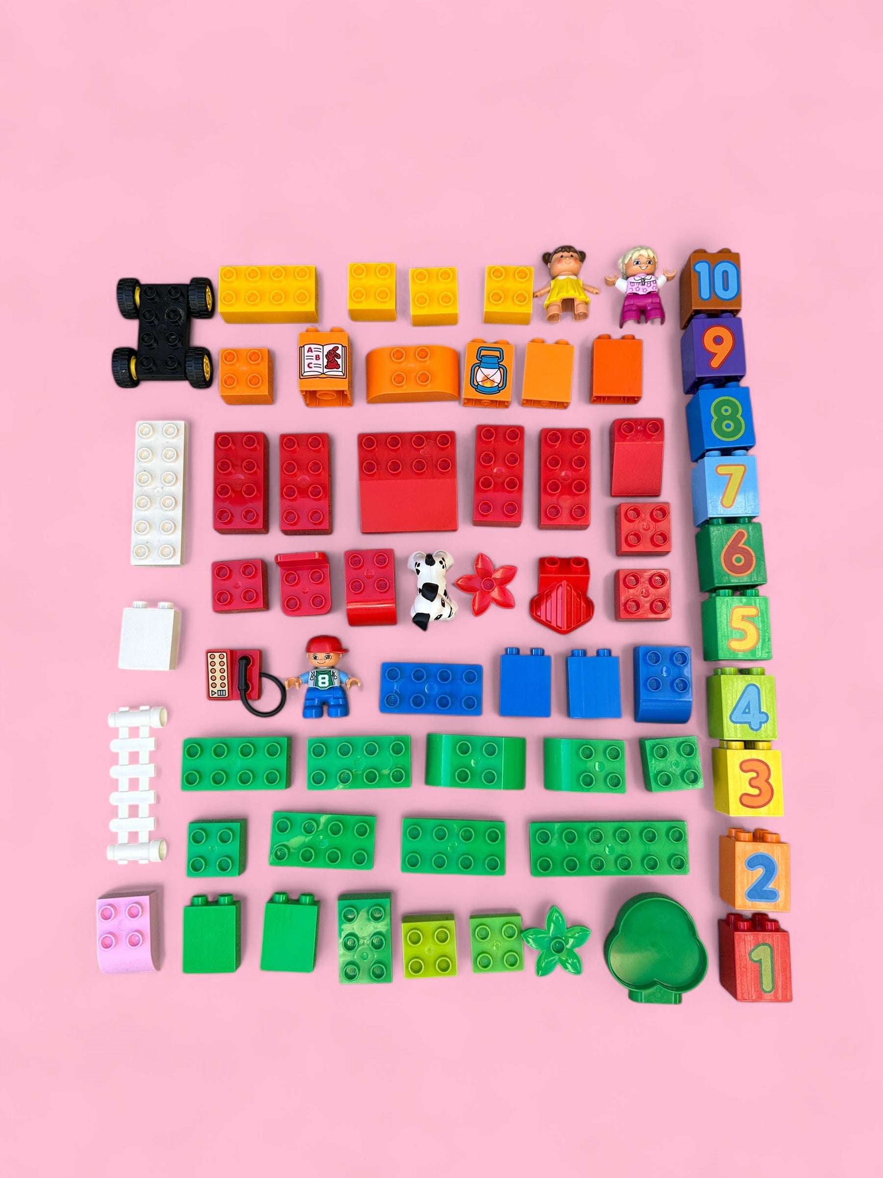 Fantasiboks med mange ulike klosser fra Duplo. 61 biter som kan brukes til å lage masse spennende byggverk, dyr, kjøretøy - hva som helst! Fantasien setter ingen grenser!