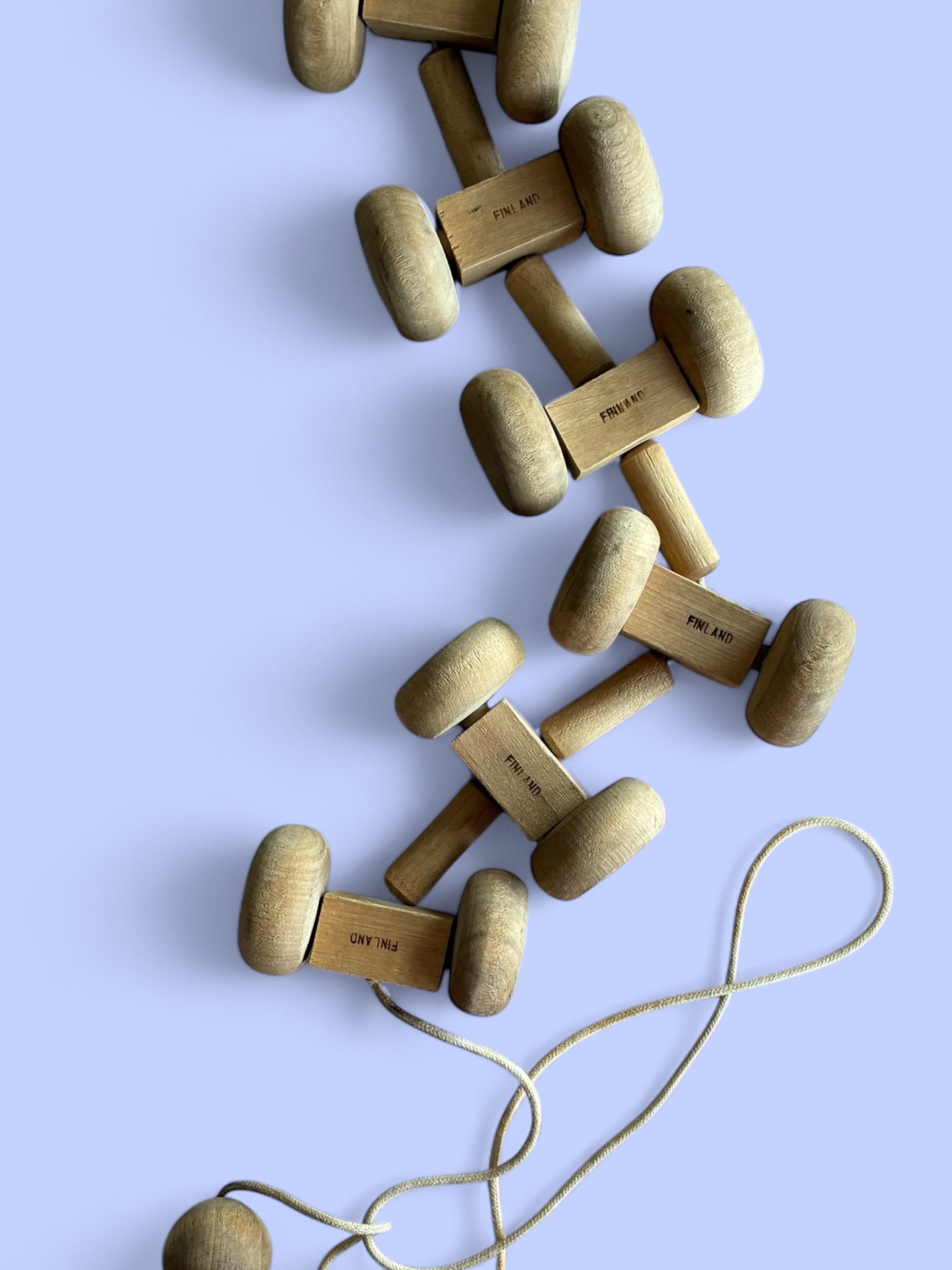 Denne treleken uten en spesifikk form danser avgårde i en helt spesiell form, den bølger seg opp og ned og ser ut som den flyter eller danser avgårde. En helt unik treleleke merket med «Finland». Det unike designet stimulerer til kreativitet og fantasi. Er det en larve? Er det en drage? Eller er det et skip? Denne treleken har en åpen form som ikke setter en begrensning i barnets kreative rom.