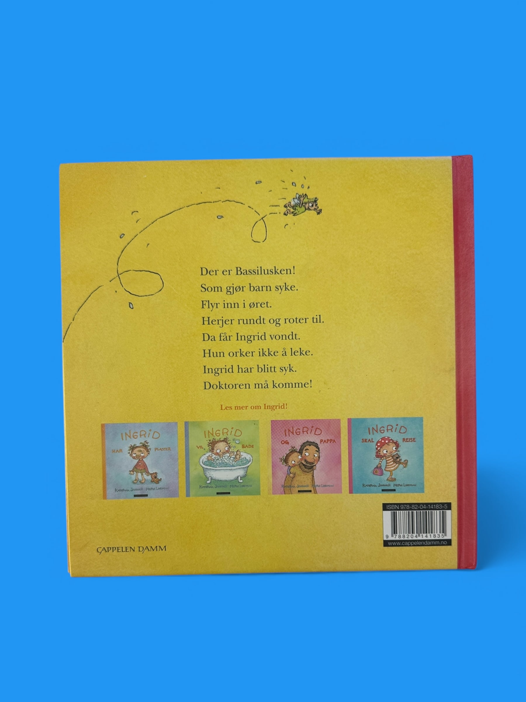 Tredje bok om populære Ingrid. Der er Bassilusken! Som gjør barna syke. Flyr inn i øret. Herjer rundt og er rampete.