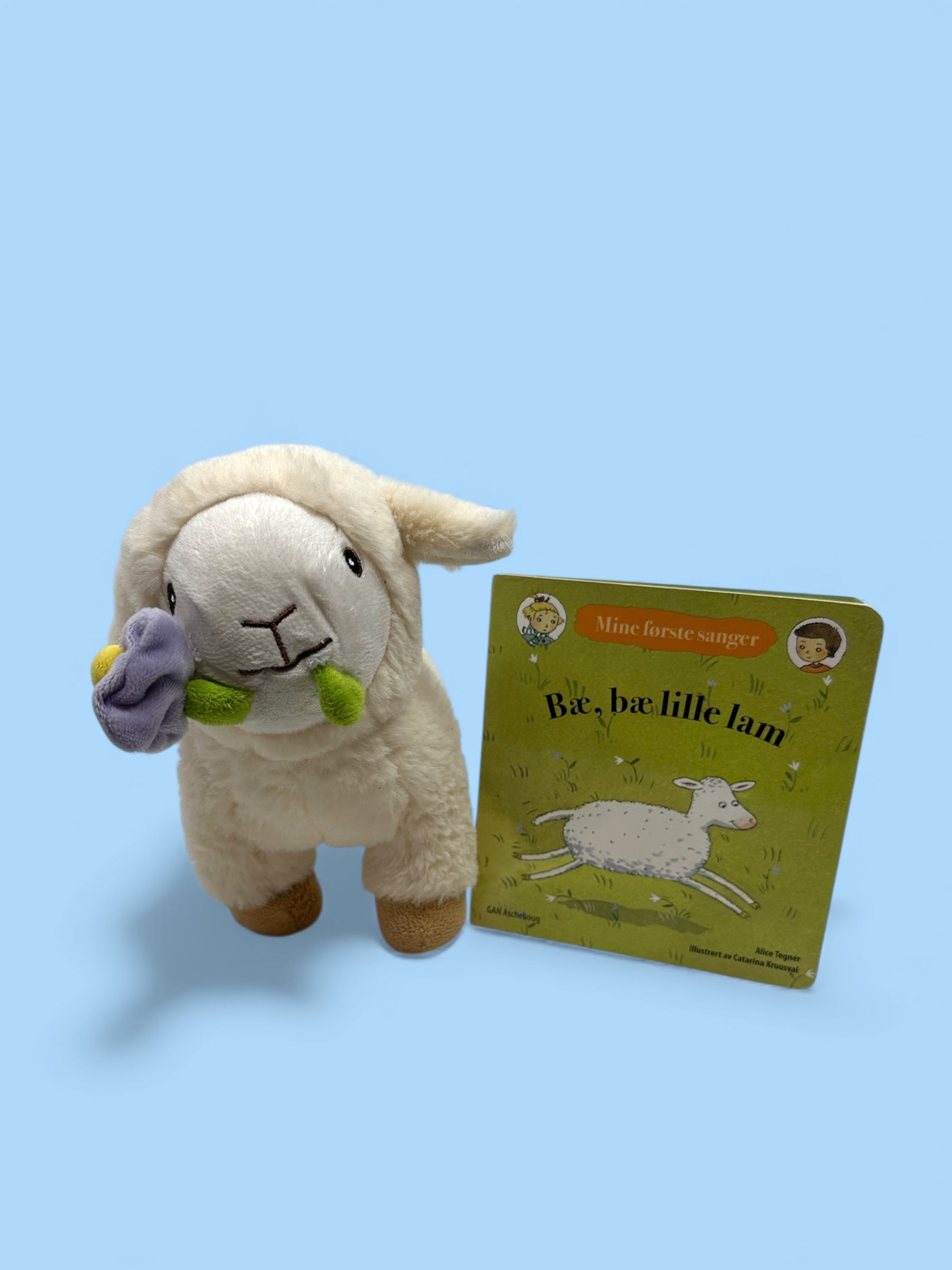 I denne pakken får du verdens nydeligste franske lille lam. Bamsen er i flott kvalitet med supersøt design. Og så følger det med en liten bok med den kjente barnesangen Bæ bæ lille lam. Boken er illustrert av Catarina Kruusval.