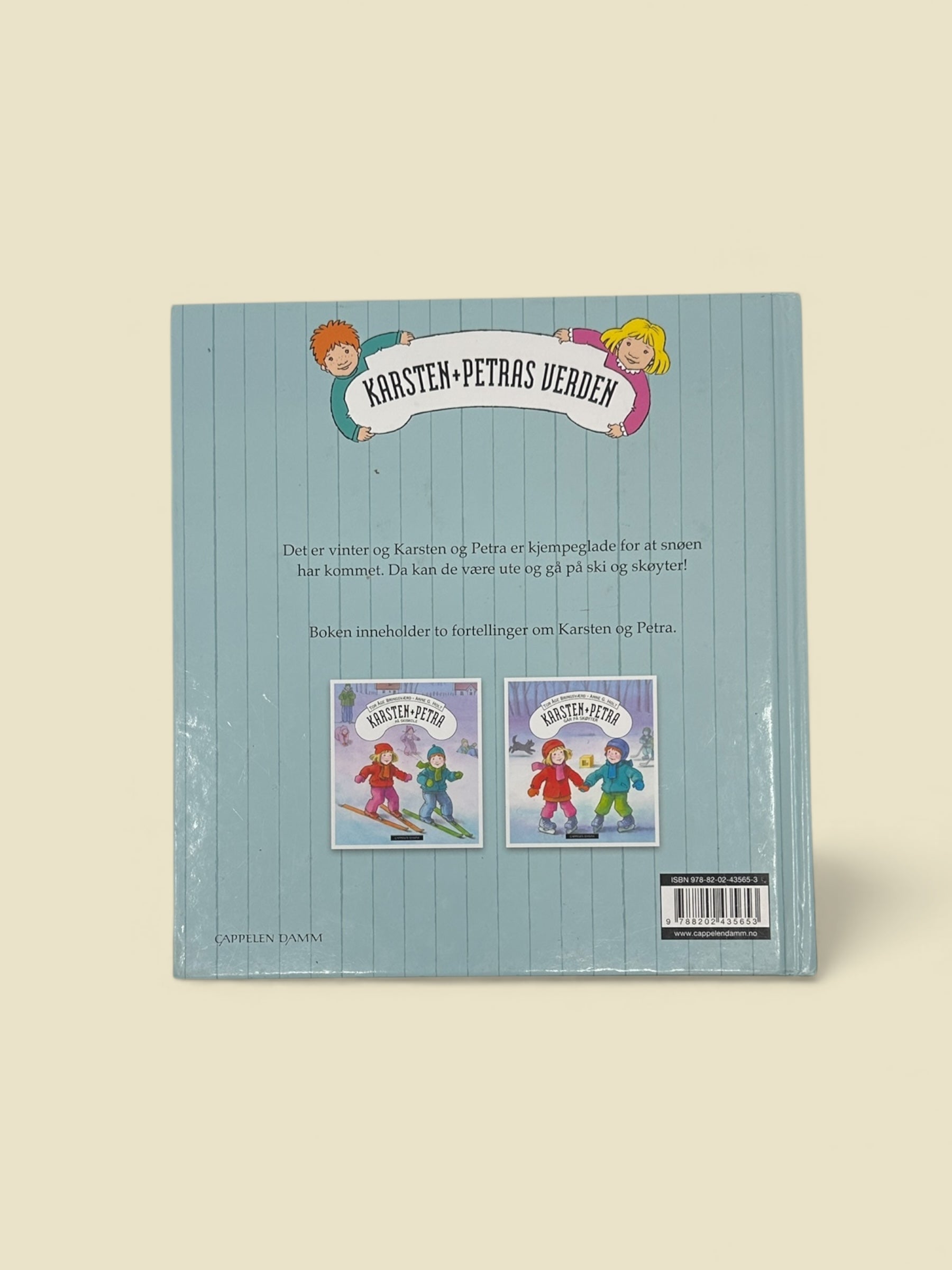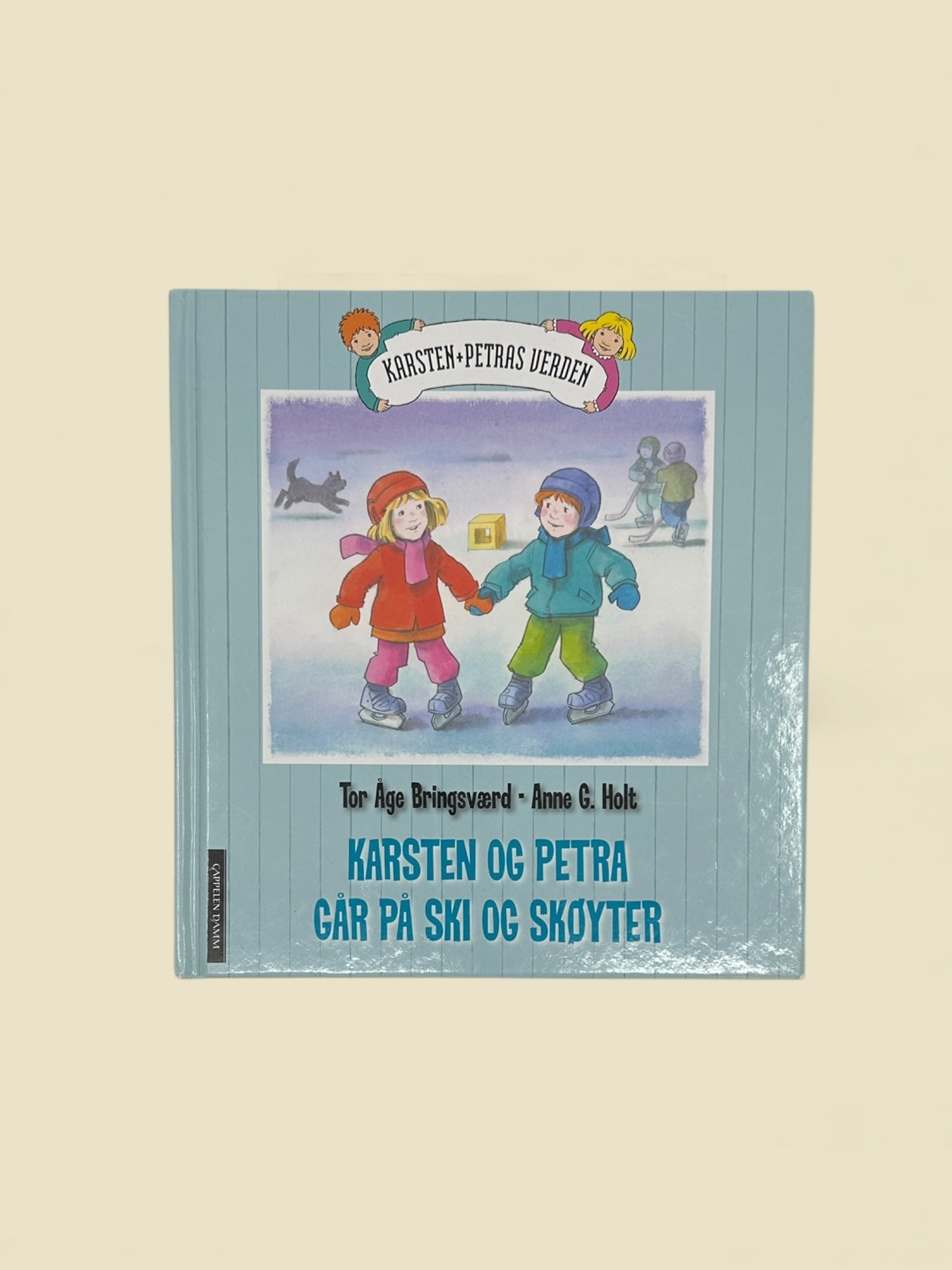 Alle de store barna i barnehagen skal på skiskole, så det skal Petra også. Karsten har fått skøyter til jul, så nå kan Karsten og Petra gå på skøyter sammen.