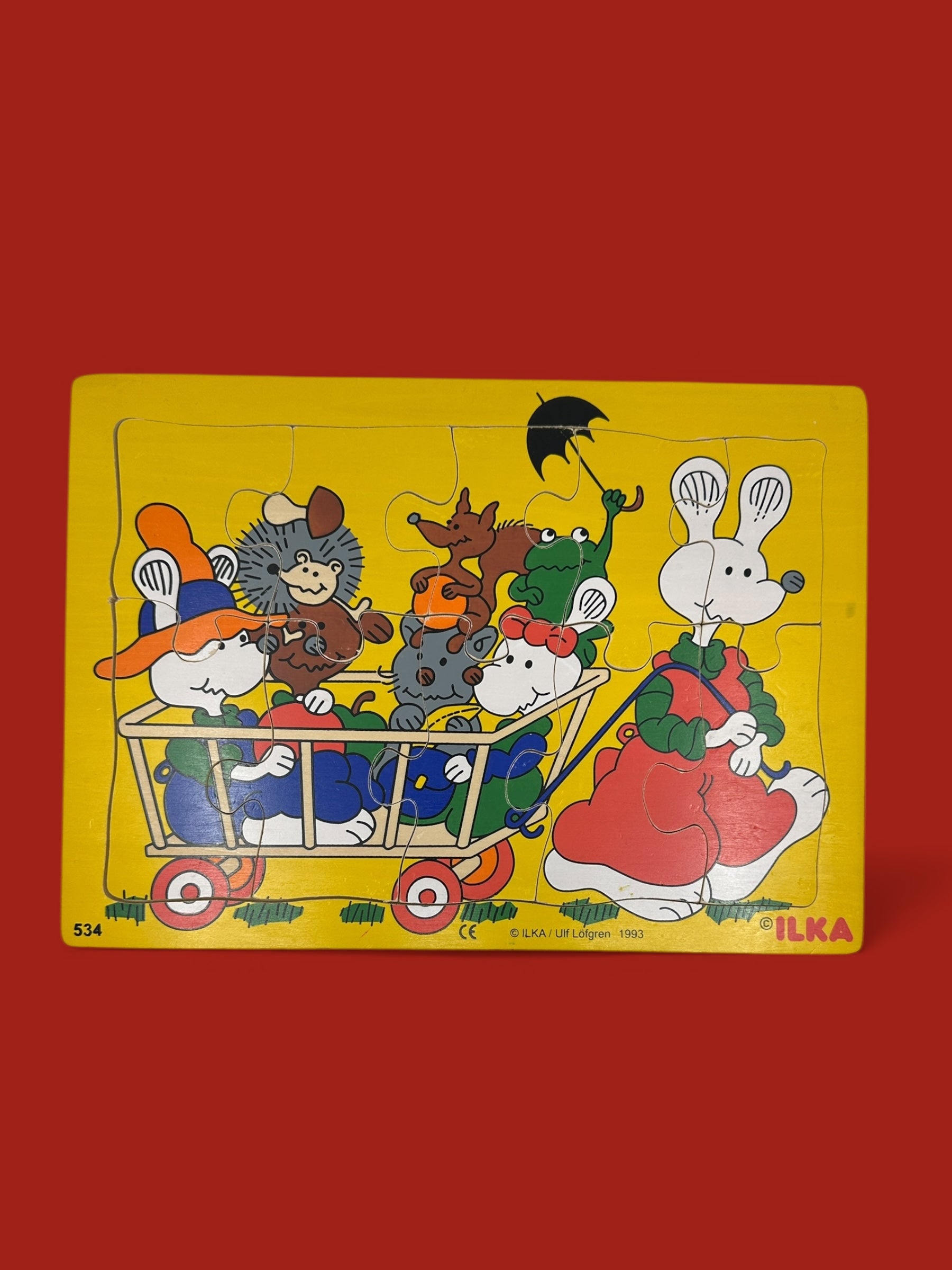 Vintage puslespill i tre med fine farger. Fremstår som nytt, sjeldent funn.