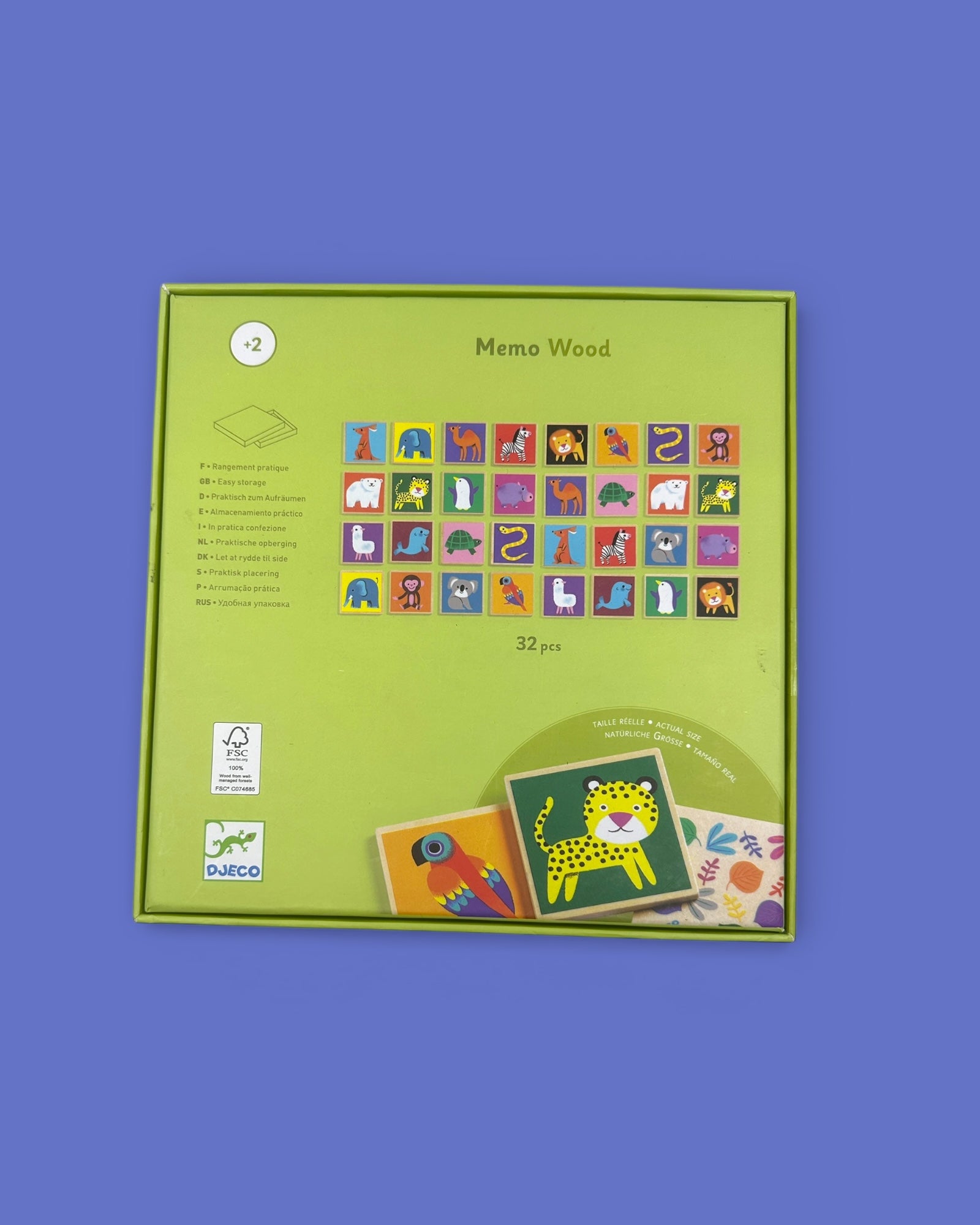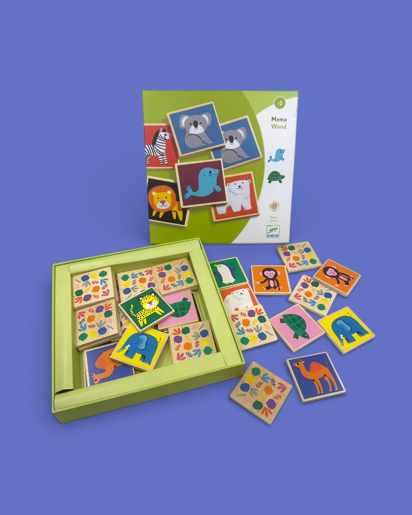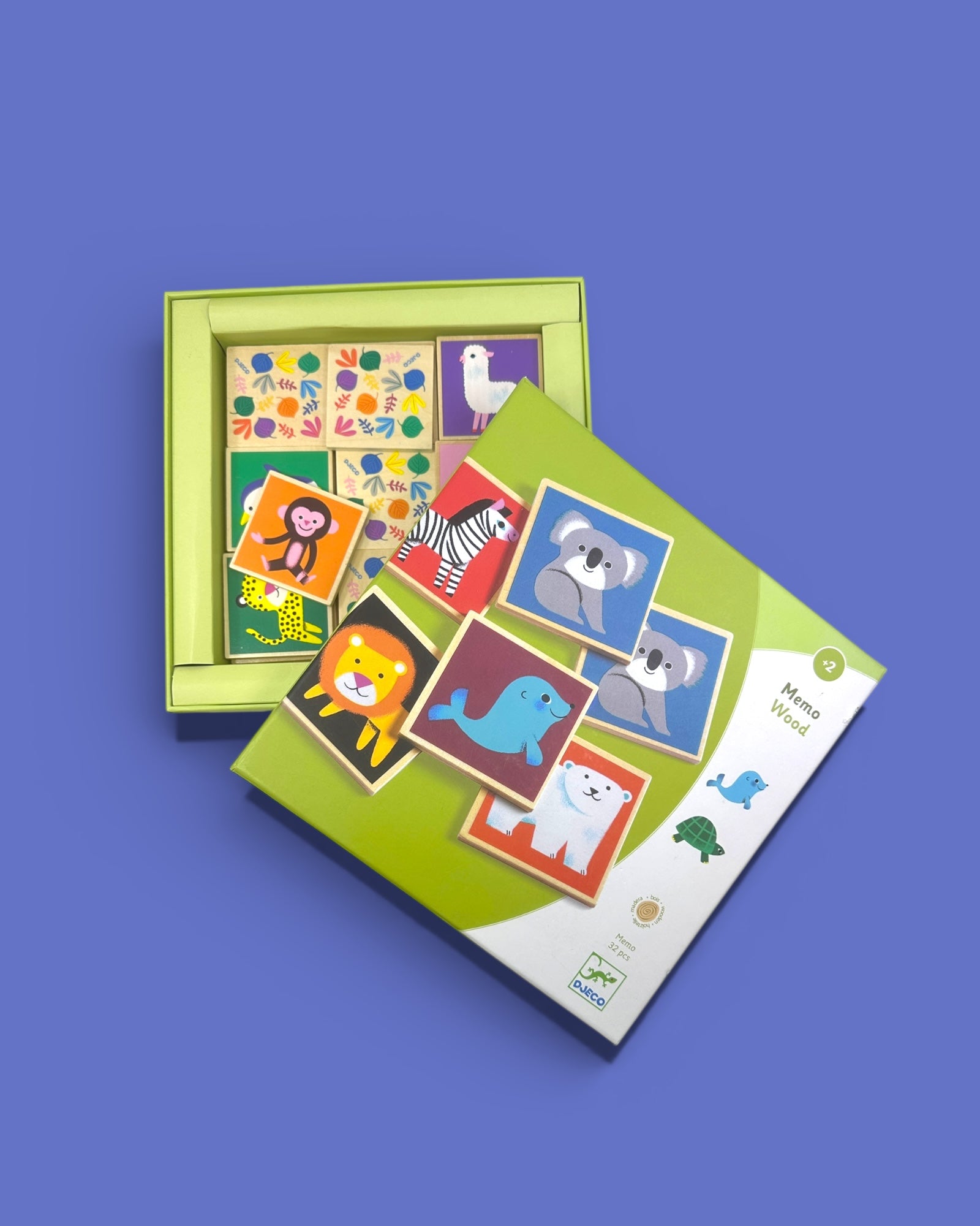 Klassisk memo i tre fra Djeco. I denne pakken er det 32 brikker med kjempesøte dyr. Legg alle brikkene med bildene ned. Her er det om å gjøre å finne parene i bunken! Hver spiller trekker to brikker når det er sin tur. Er de like, vinner du paret. Er de ulike, legger du begge brikkene tilbake og venter til neste runde. Målet er å huske hvor på bordet de forskjellige brikkene ligger, slik at du kan finne parene. Spilleren som sitter igjen med flest par når det er tomt for brikker, vinner!