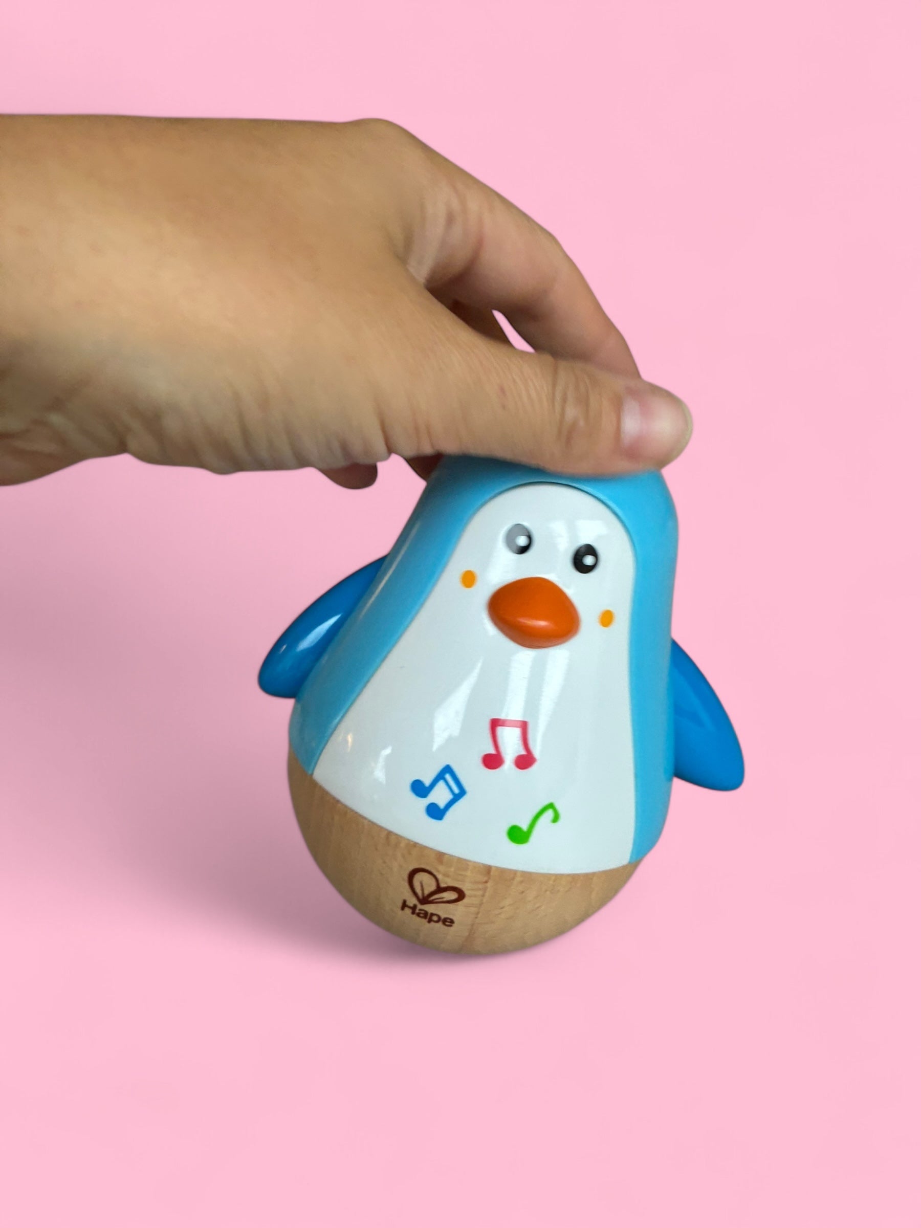 Musikalsk pingvin fra Hape som spiller musikk for de aller minste. Barnet ditt får oppleve lyd og glede i pingvinens beroligende melodi. Fleksibel med sin avrundede nedre del.