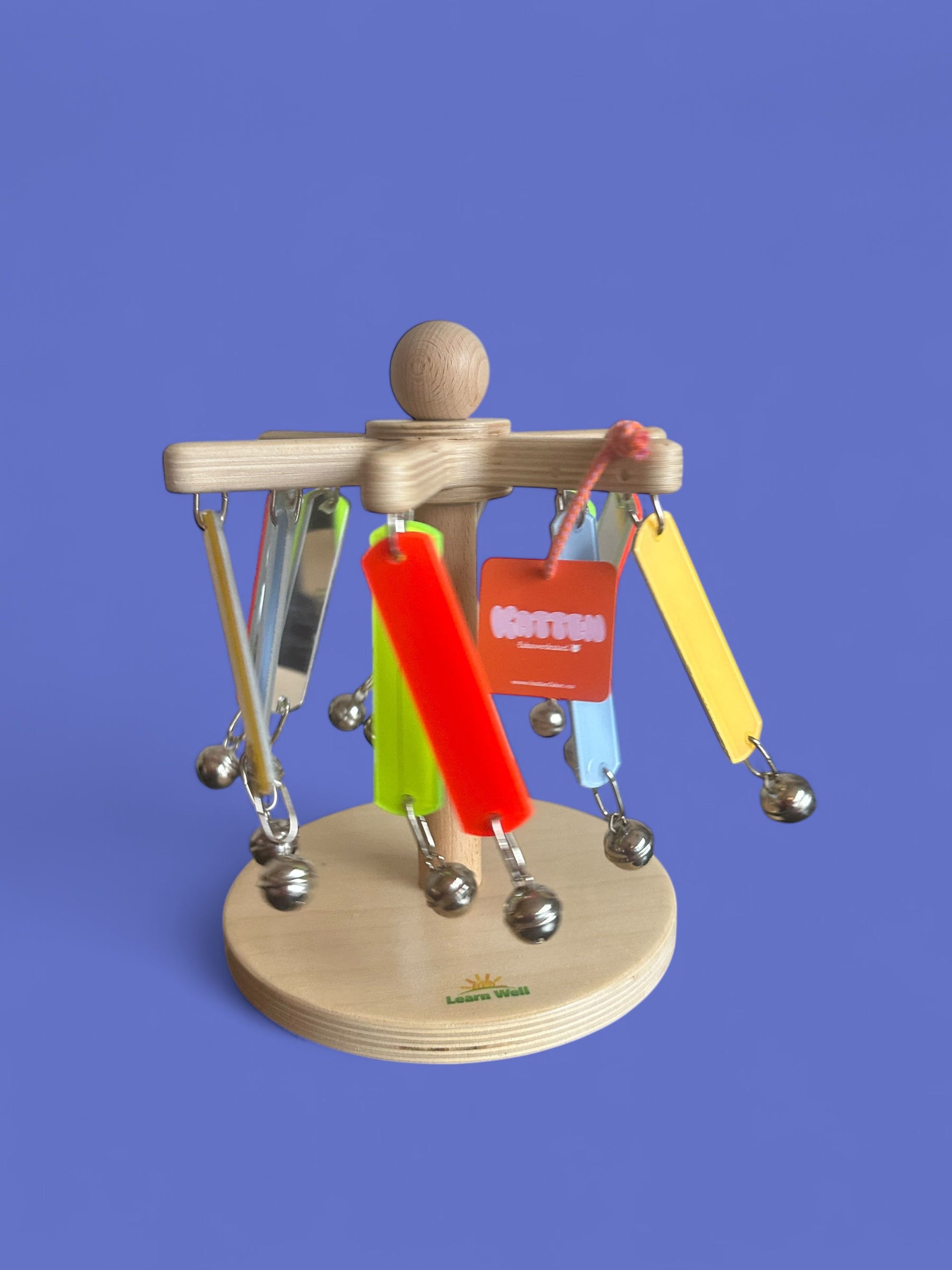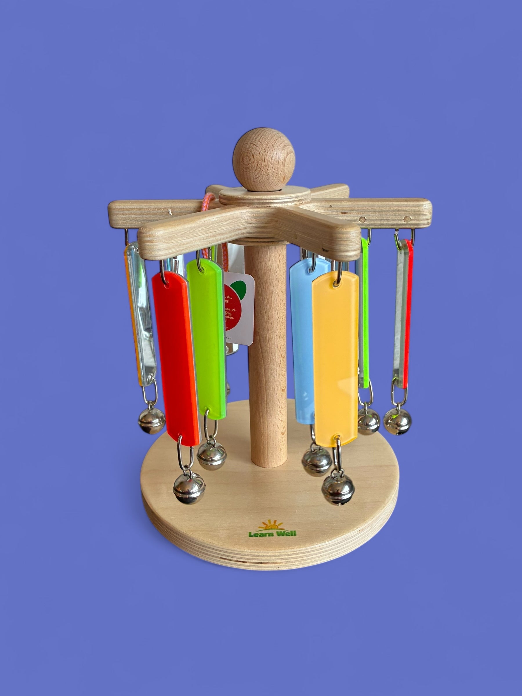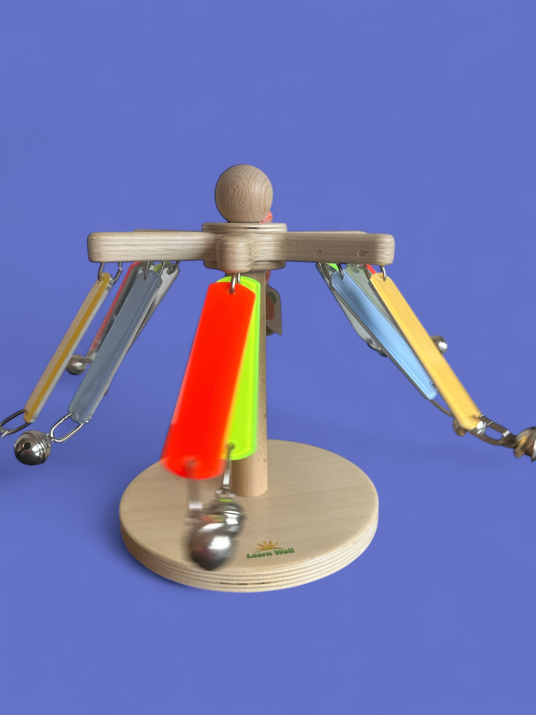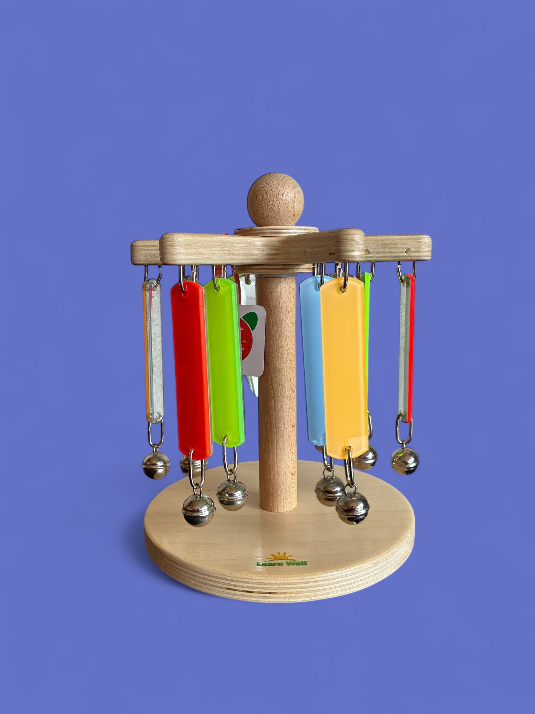 Sansekarusell med lyd, farger, speil og fart. Denne kvalitetsleken fra Learn well er den perfekte leken for nysgjerrige babyer og småbarn. Med fargerike speil og lystige bjeller stimulerer den barnets sanser og vekker nysgjerrighet. Treleken er robust og trygg for små hender og leke med.