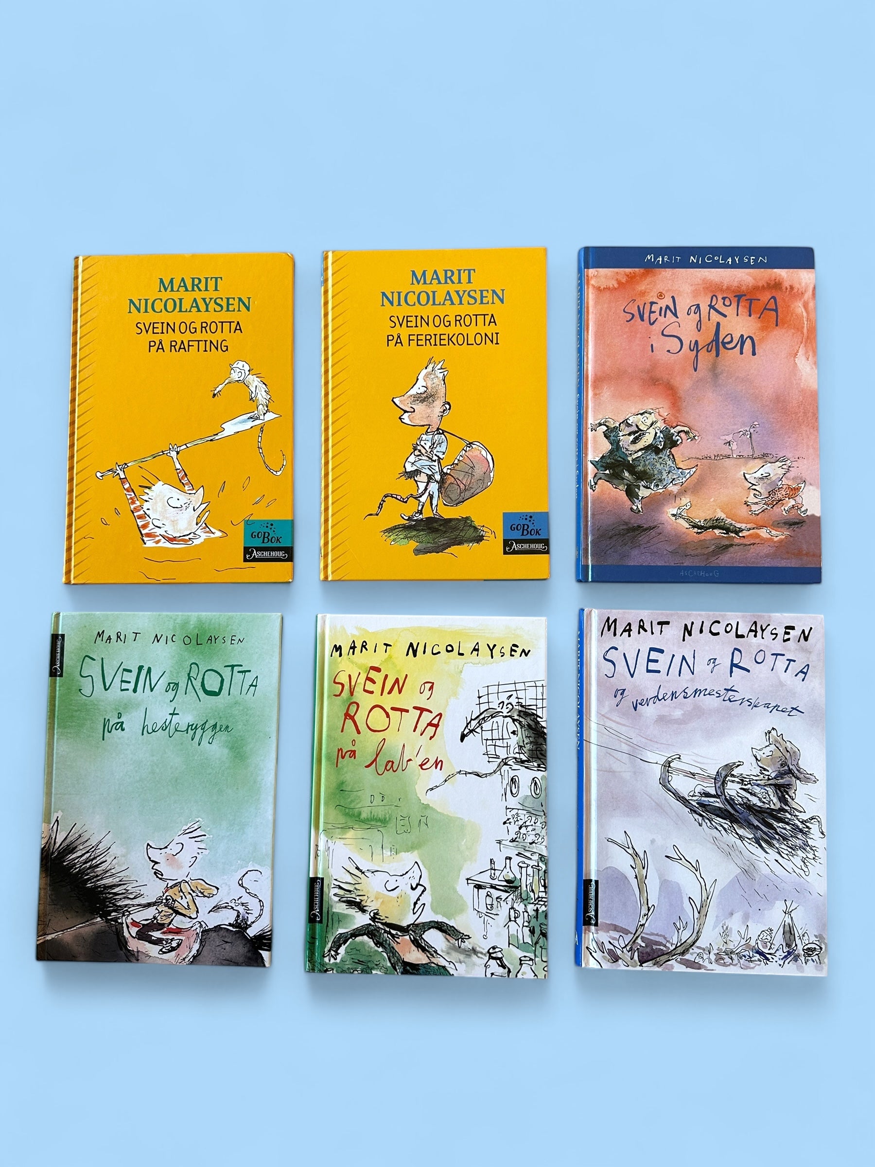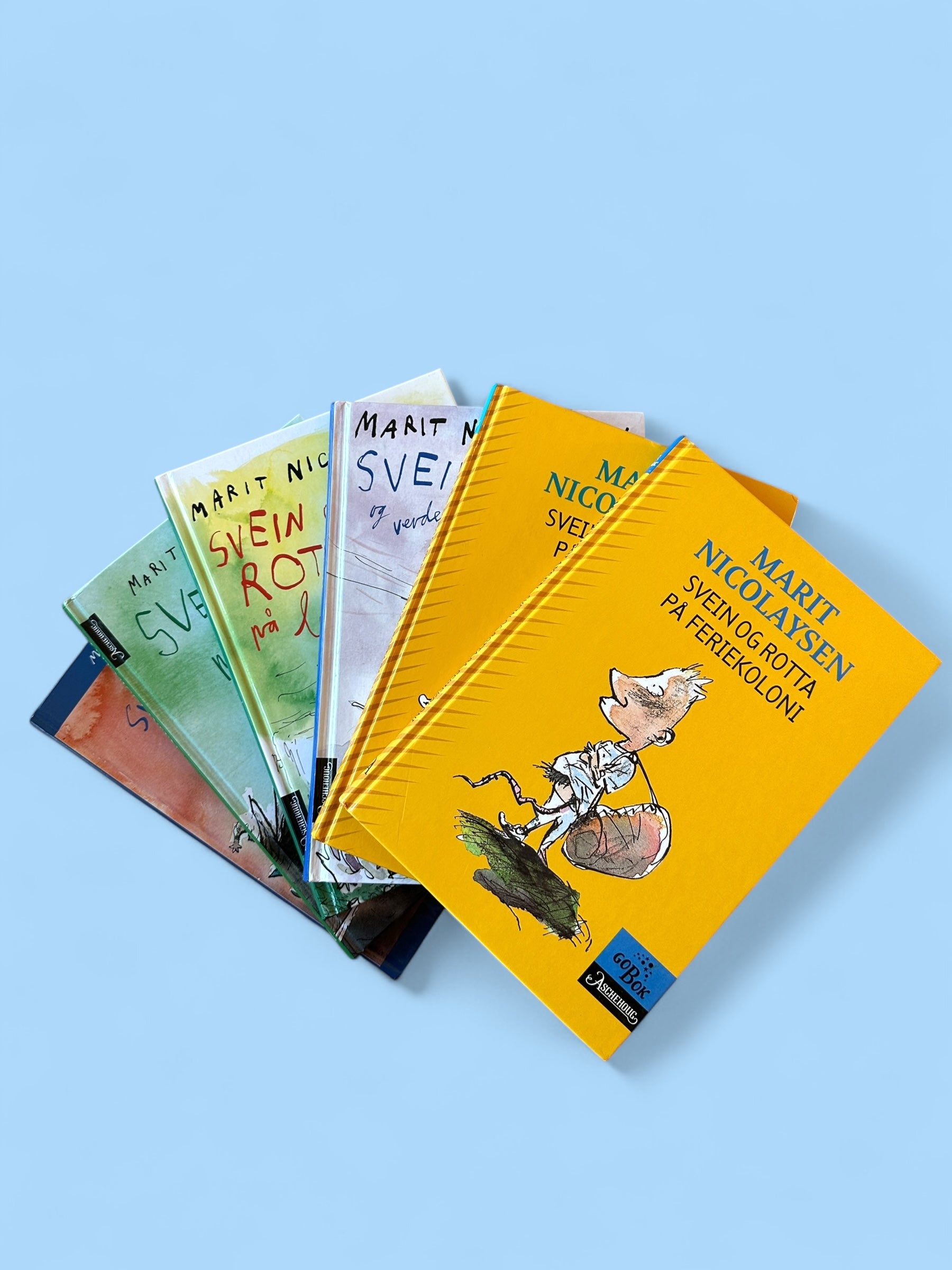 Seks bøker om Svein og rotta skrevet av Marit Nicolaysen, disse bøkene er utrolige morsomme og engasjerende. Her får du en pakke med seks historier, perfekt for en lang sommerferie!