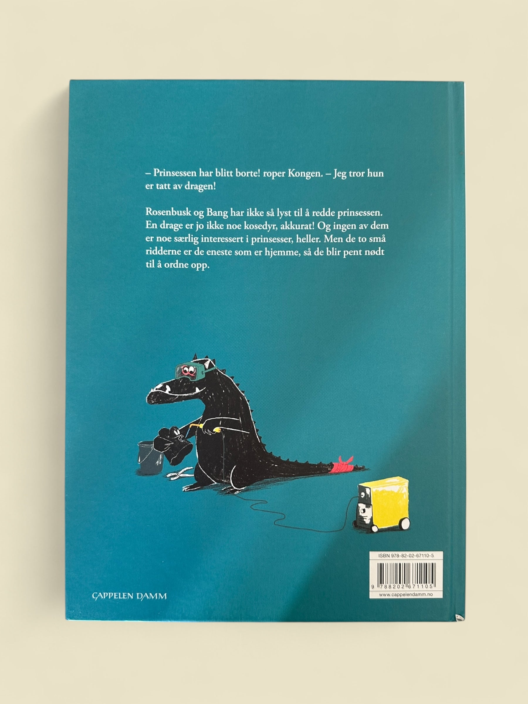 De to små ridderne har ikke så lyst til å redde prinsessen. En drage er jo ikke noe kosedyr, akkurat! Og ingen av dem er noe særlig interessert i prinsesser, heller. Men Rosenbusk og Bang er de eneste ridderne som er hjemme, så de blir pent nødt til å ordne opp.
