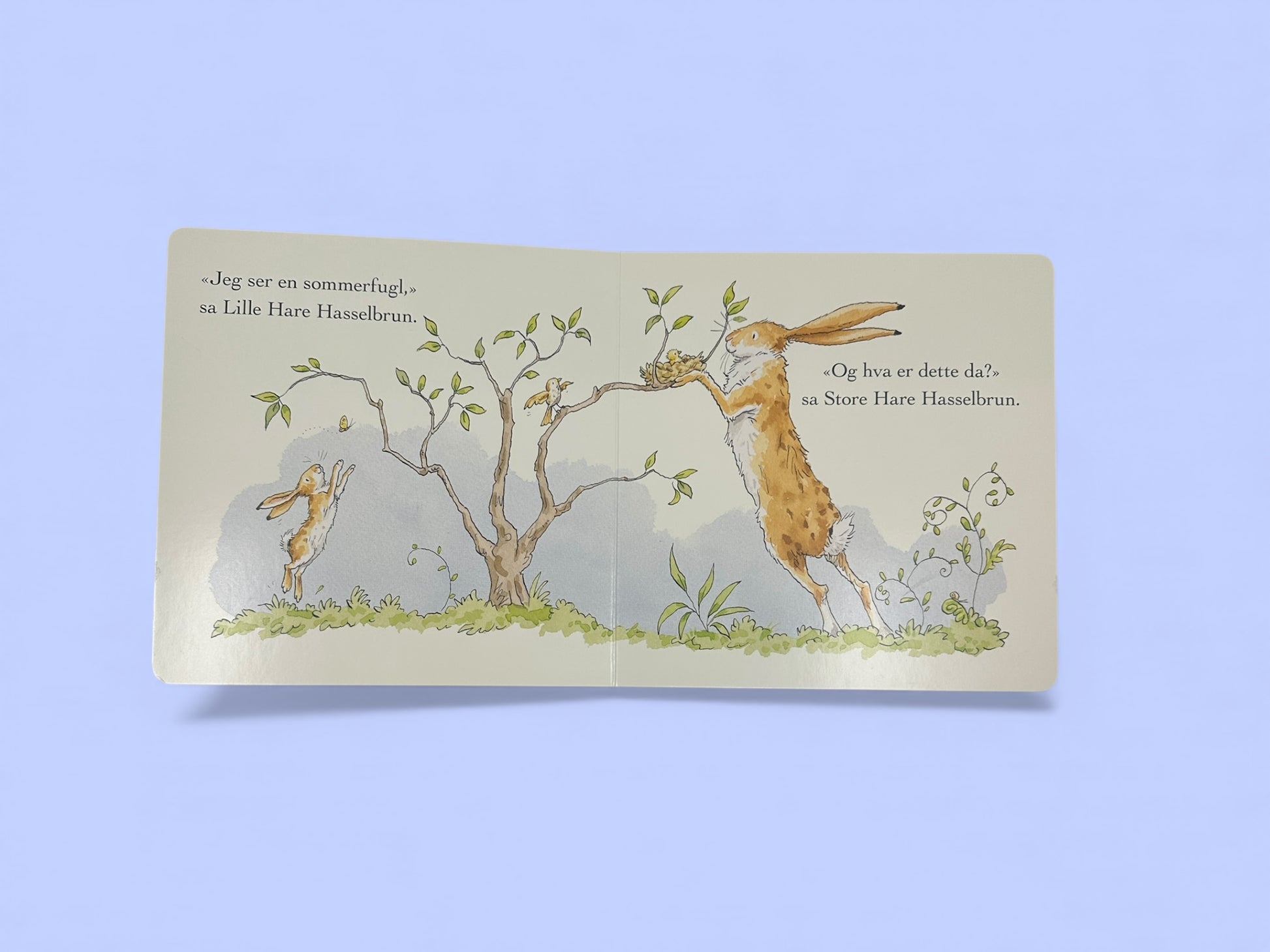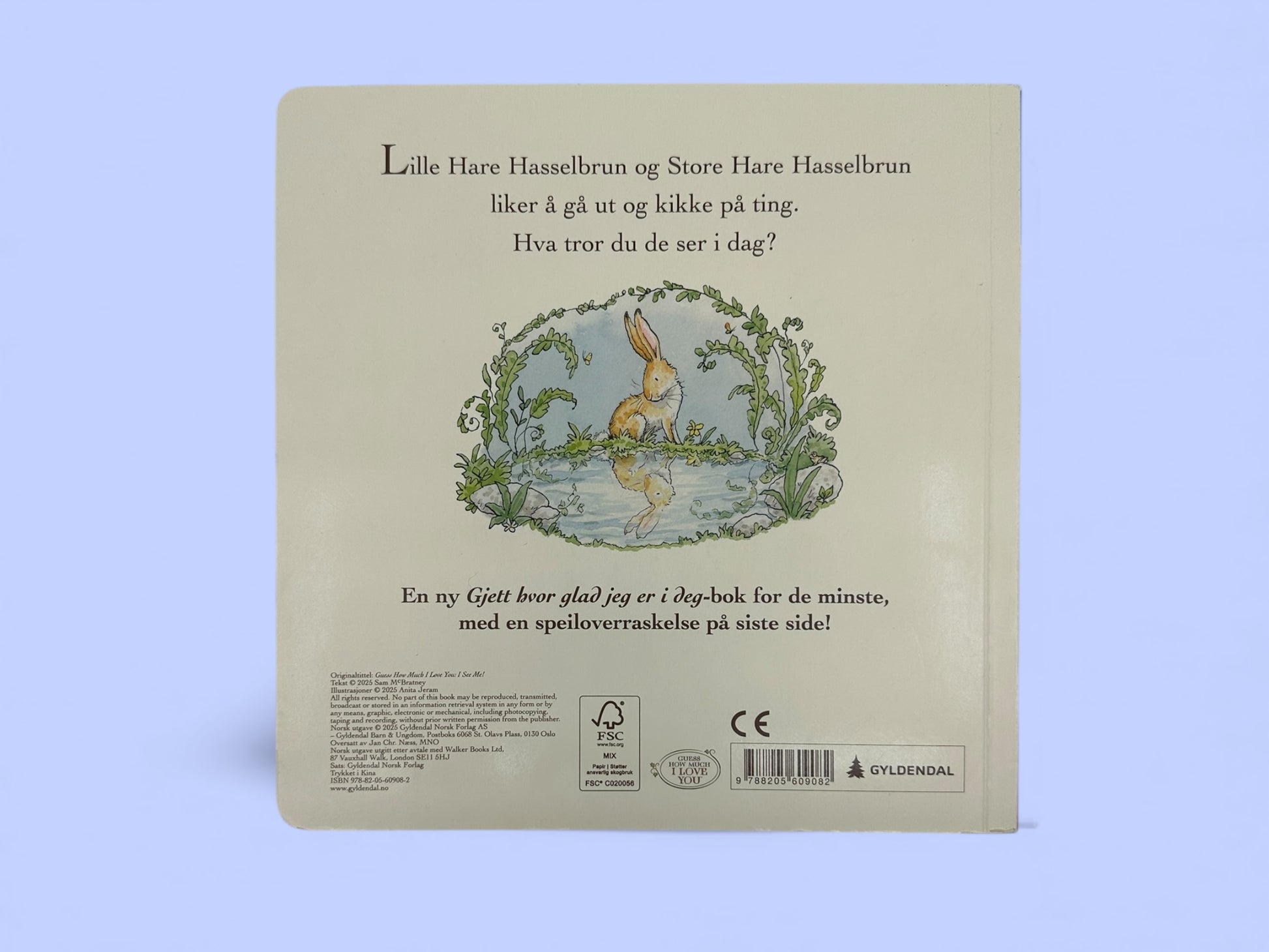 Og ikke minst boken «Jeg ser meg!» Gjensyn med Lille Hare Hasselbrun og Store Hare Hasselbrun. De to Hasselbrun-harene liker veldig godt å gå ut og kikke på ting. Hva tror du de ser i dag?Klassikeren Gjett hvor glad jeg er i deg ble utgitt for 30 år siden. Siden da har Hare Hasselbrun-bøkene solgt i mer enn 57 millioner eksemplarer over hele verden.